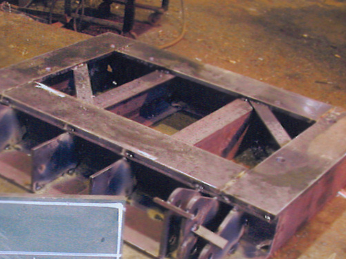 チャンネル型、アングル型を組み合わせたステージ架台。